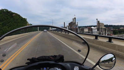 The first, an afternoon conversation in Ashland. They were returning home to NH from a trip west. He, a BMW rider that told me something about a new Moto Guzzi (had the T-shirt on) that I knew nothing of. We met again over motel breakfast, some very kind and generous compliments about my blog before each heading our opposite directions.