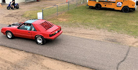 Peg came to pick me up, we went back for the van/trailer and she joined me for another trip to help push the midsize VStar on to the trailer. I had the presence of mind to bring the air tank, but we had only a minute or so of push time before the tire was once again flat on the bottom, so it was a rushed trailer loading operation. The Nerstrand Woods State Park was very happy to have my bike out of their parking lot....must have been one of their busiest days ever.