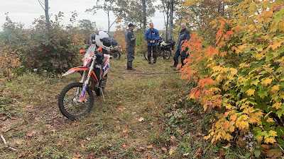What a trip!!  We had a great time, the riding, the weather, the colors in the woods and best of all, the time together.  Stories flowed, the cabin Eric found for us a big part of the glue that tied it all together.  Greg's chili with accoutrements a major treat and Eric's (Ursula too!) pie that we were way too full for but made go away regardless.