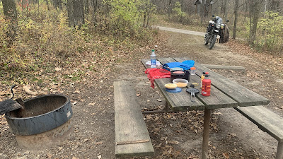 Whitewater is nearby Carley, the place that I've been overnighting at so it was easy to give that a try. When I arrived, the picnic area was crowded, none of the picnic tables private enough for me. But when I rode through the campground, my favorite site was wide open, campers that had been there and in nearby sites for the weekend were already on their way home.