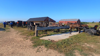 The guys followed me to the Cashton Produce Auction....going to be another cloudless, hot September day.